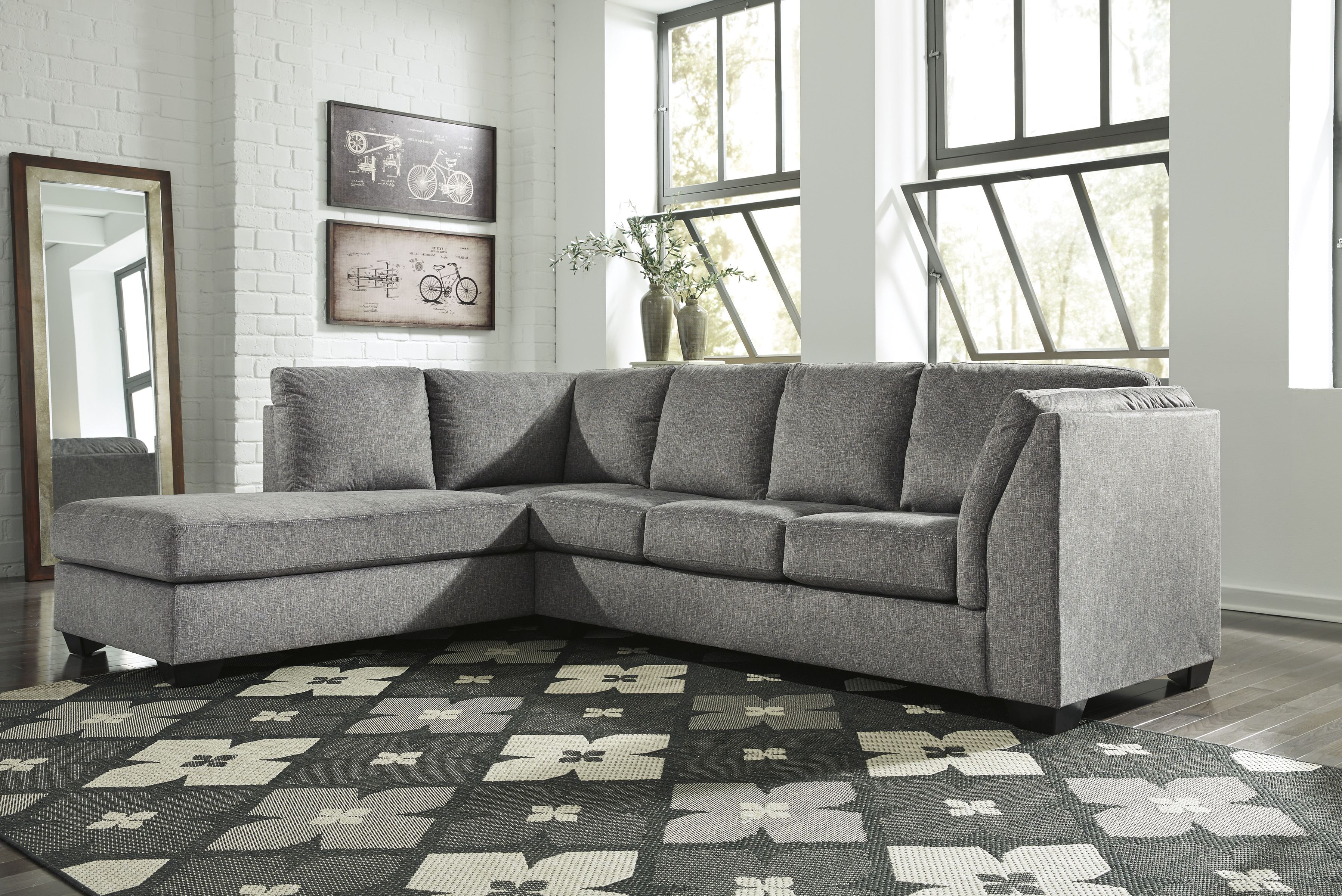 Complete your sectional with the comfortable and stylish Belcastel right-arm facing sofa. The angled pillow arm, dark tapered feet, and subtle seat-cushion tufting brings you not only relaxation, but the sophisticated style you crave. Lean back against the ample, plush cushions, and delight in binge-watching, reading, or just chilling out. Fulfill your wish for a tasteful contemporary home with this RAF sofa.