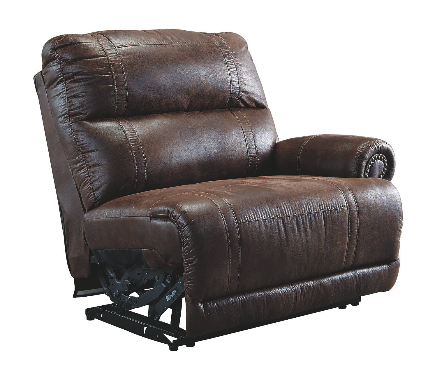 This is how relaxing was meant to be. Ditch the levers and pulls—the push of a button takes your seating relaxation from typical to luxe comfort as smooth as its espresso upholstery finish. With power recline options at the press of a button, you can find your ideal relaxation position. Pair this to other Luttrell collection sectional items for the ultimate living room seating. Discover supple faux leather, the soft extended footrest, and power recline that is as easy to use as this recliner is elegant. Create a haven for you and your family with the Luttrell collection.
