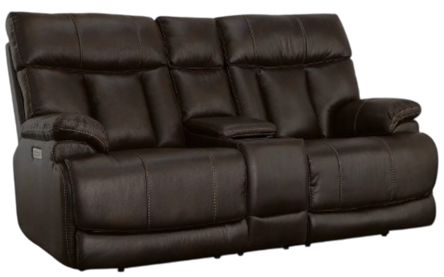 High-end ergonomic design — Sit comfortably and keep remotes and beverages close at hand with the Clive Power Reclining Loveseat with Console and Power Headrests and Lumbar. This high-comfort, high-quality loveseat has a distinctive look with pillow pad armrests and contoured seat cushions, along with elegant heavy thread stitching and a channeled back cushion.Read More