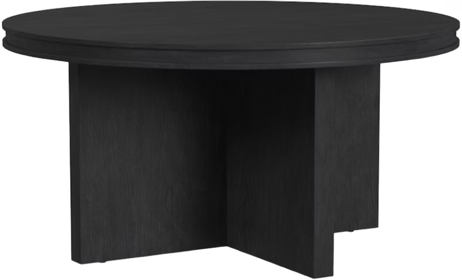 Architectural appeal. Add effortless style and architectural appeal to your living room with the Waterfall round coffee table. This striking table features a timeless silhouette defined by clean lines and simple geometric shapes, including a substantial sculptural crisscross base that supports the roomy surface.Read More