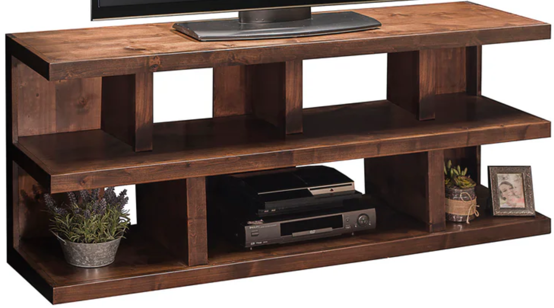The Sausalito open console TV stand features a simple yet elegant design, finished in a rich whiskey hue on knotty alder wood. It supports TVs up to 70" while offering ample storage for all your media essentials. This piece highlights the natural beauty of the wood, adding a unique and stylish touch to any living space.Read More