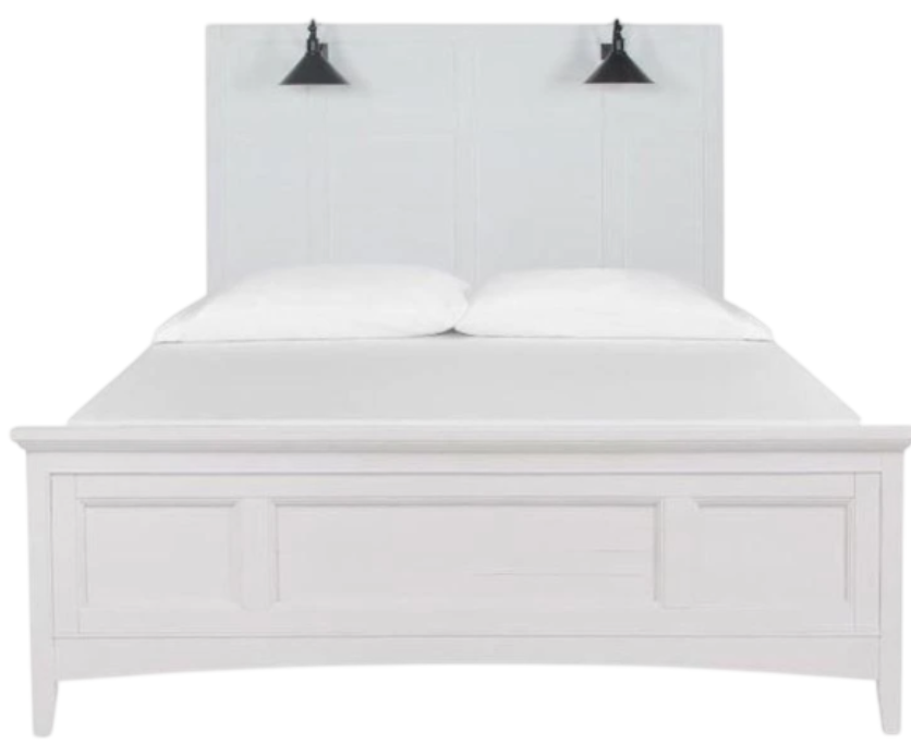 Simple, functional and full of style, the Heron Cove Lamp Panel Bed in chalk white finish features a framed panel motif and two lamps on headboard. This piece offers a new take on your average bed space.Read More