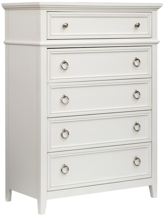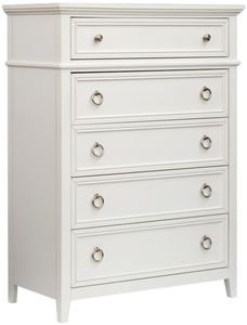 The Juniper Hill collection drawer chest offers a fresh, stylish storage solution with its clean white finish and tall, space-saving design. Featuring five spacious drawers, it provides organized storage for clothing and essentials. Its sturdy construction and 38"W x 20"D x 52"H size make it both practical and visually appealing.Read More