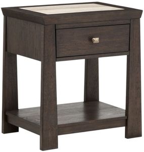 The Tauren Collection open nightstand offers a classic blend of style and practicality, making it a perfect bedside companion. Finished in a rich brown tone, it features one drawer and an open shelf for organizing nighttime essentials, a USB port and USB-C. Its sturdy construction and clean-lined design provide both durability and timeless appeal for any bedroom setting.Read More