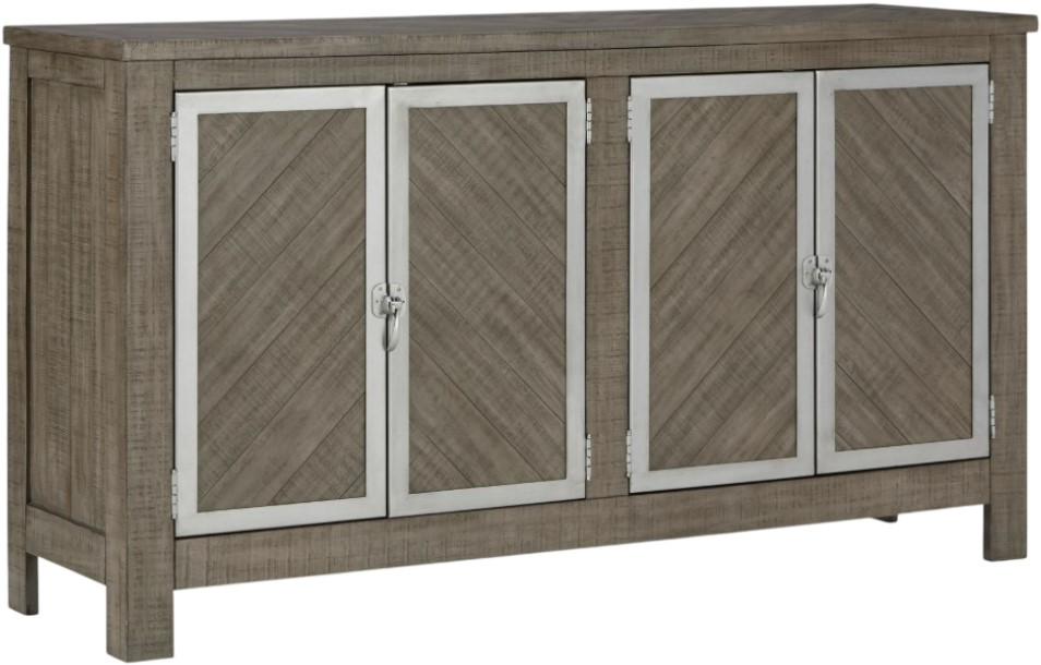 The use of mixed materials on this urban-inspired double buffet makes it a true statement piece. Made of wood with metal accents, this buffet features two spacious cabinets, each with an adjustable shelf and metal framed doors with trend-right window latches.Read More