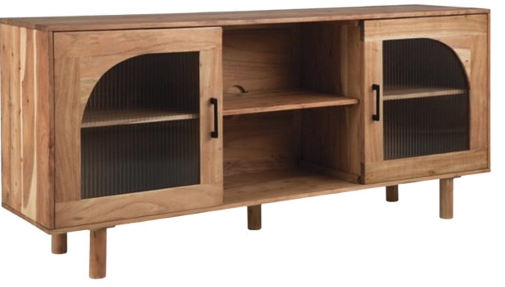 Simply chic storage awaits with this accent cabinet. With the versatility to act as a classic sideboard or a trendy TV stand, it’s at home in settings ranging from casual to modern. Doors with curved half-arch glass inserts soften the clean-lined look, while the removable shelves inside give you that much more flexibility.Read More