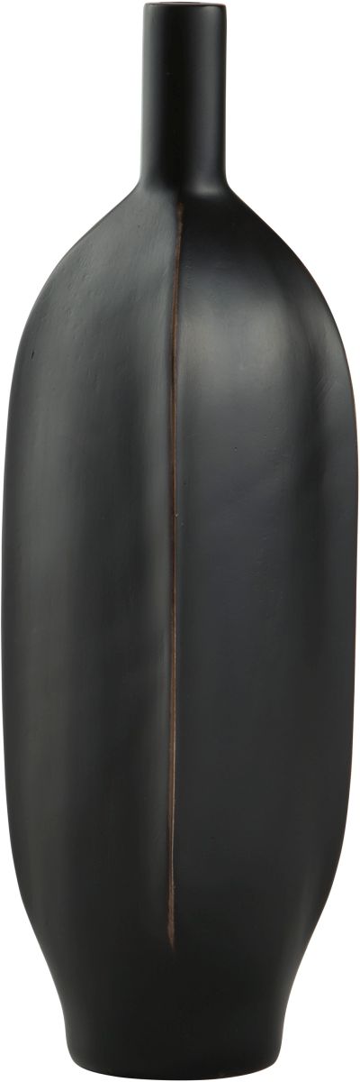 Impress with the simply sleek stylings of this vase. A black finish coats the piece, with a brown rub on the corners acting as a subtly eye-catching design element. What a chic addition to your bookcase, mantel or tabletop.Read More