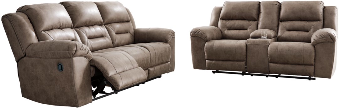 For those who love the cool look of leather but long for the warm feel of fabric, this reclining sofa delivers both with ease. Its high-performance padded faux leather is remarkably durable and easy to clean, making it just the thing for family spaces.